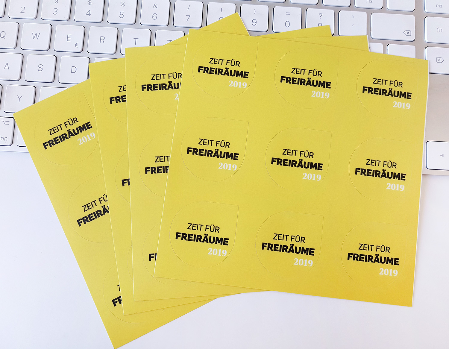 Mit diesem Aufkleber machen Sie aufmerksam auf "Zeit für Freiräume". Zum Beispiel auf die Rückseite Ihres Handys, auf Ihrem Kühlschrank, Auto, Terminkalender etc. Wo immer Sie den Aufkleber anbringen werden Sie stets an "Zeit für Freiräume" erinnert.